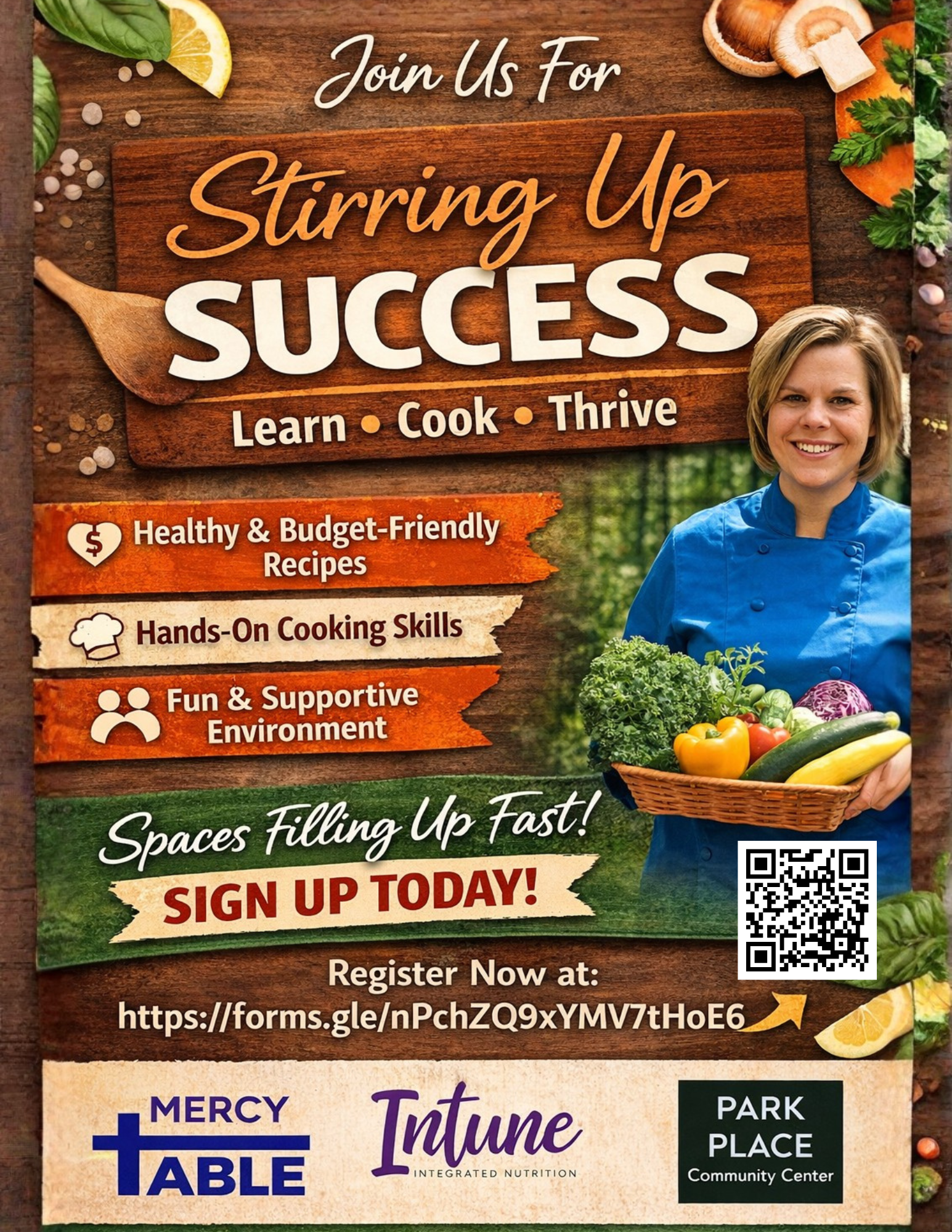 Stirring Up Success is a hands-on teaching kitchen designed to equip you with practical cooking skills, healthy habits, and the confidence to provide for yourself and your family. In a welcoming environment, you’ll learn how to prepare simple, nutritious, and budget-friendly meals while connecting with others in community.