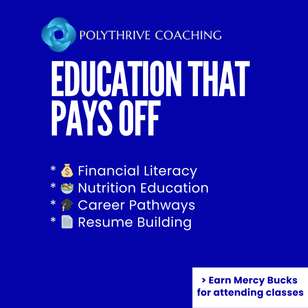 💳 Earn Mercy Bucks for attending classes—an earned incentive you can use in-store anytime for essentials.